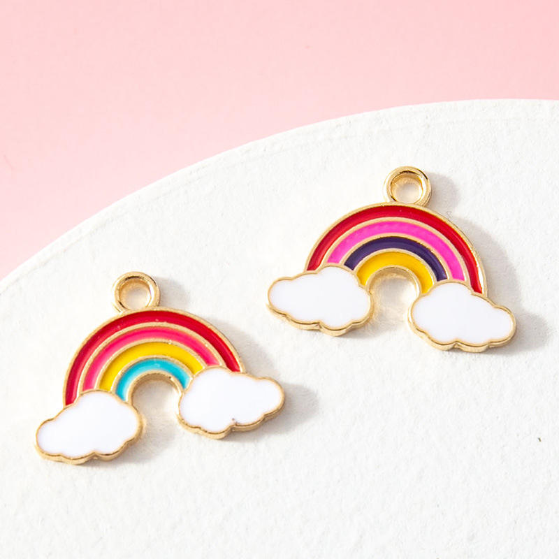 Diy's New Double-Sided Drip Clock Snap Buckle Small Rainbow Metal Pendant Bracelet Accessory with Alloy Electroplating