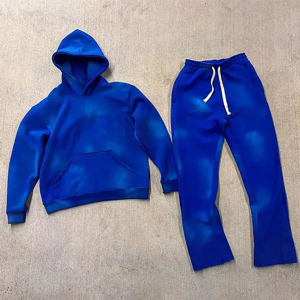 Dizzah Clothes Manufacturer Oem 350GSM Regular Fit Vintage Two Piece Sets Men Sweatsuits Customized Logo Pullover Tracksuits Men