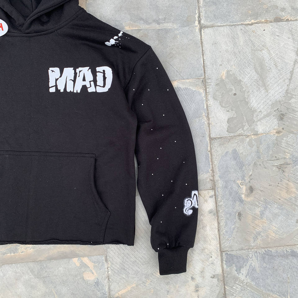 Dizzah Women's Black Acid Wash Hoodie 3D Embroidery Tie Dye Techniques Custom Logo Placement Street Style Loose Fit Collar Front
