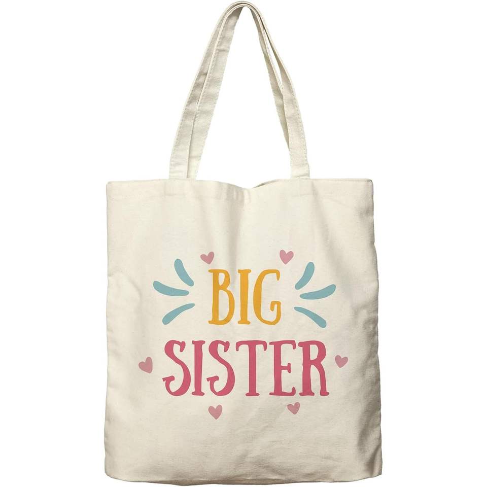 Dlzdn Women's Aesthetic Cute Big Sister Canvas Tote Bag Fashionable Shopping Grocery Beach Bag Gift