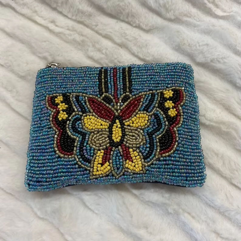Do List Beaded Teacher Pouch Coffee Teach Repeat Pattern Handmade Embroidered Mini Bag for Women Zipper for Coin Small Storage