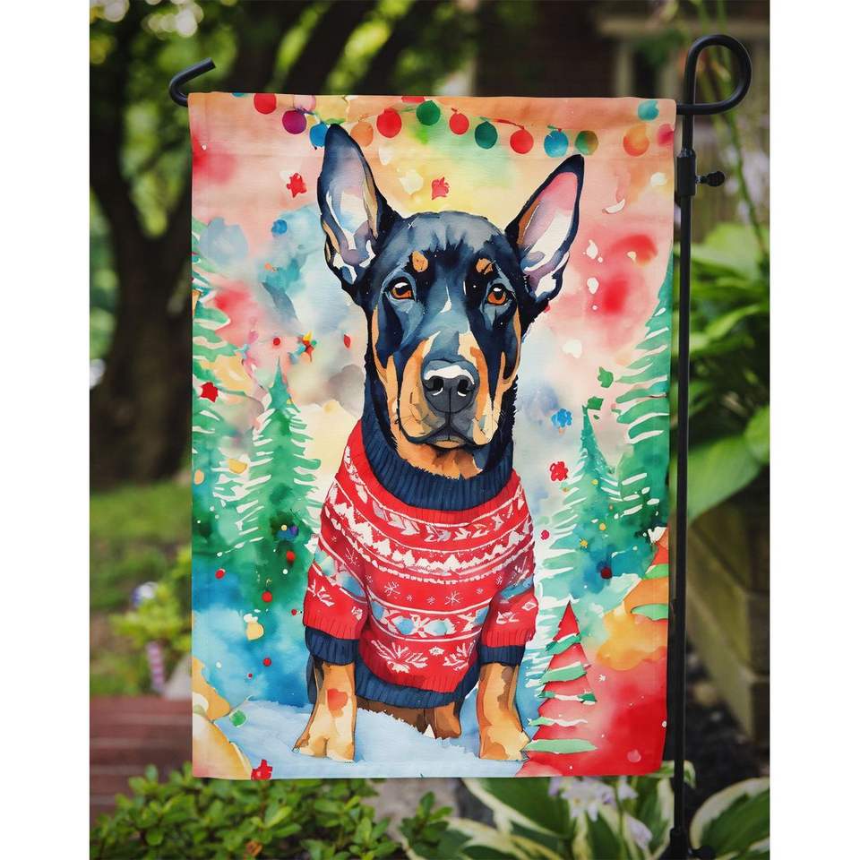Doberman Pinscher Christmas Garden Flag Multicolor Decorative Mailbox Flag and Patio Artwork for Yard & Lawn for Flower Beds