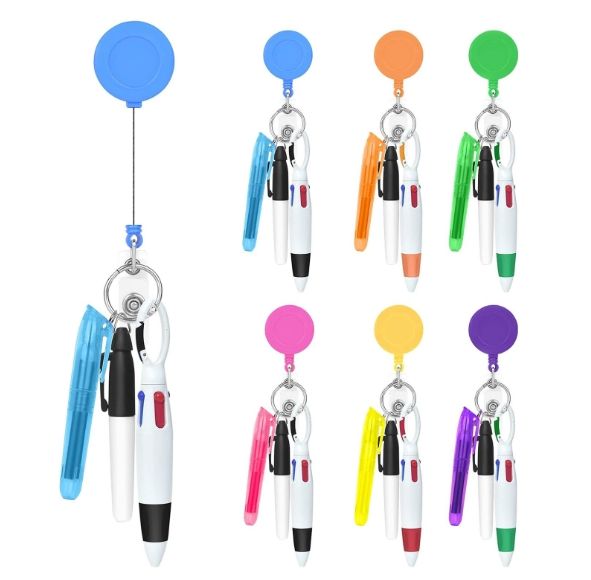 Doctor Pen Set Retractable Highlighter Marker Pens Badge Reels Key Rings LED Retractable Badge Reel Badge Holder