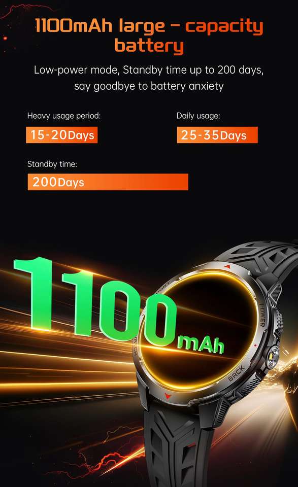 Dodobit 1100mAh Large Battery TFT Display Silica Gel 50mm Outdoor Smart Watch DT05 Unisex BT Call IP67 Waterproof Sleep Tracker
