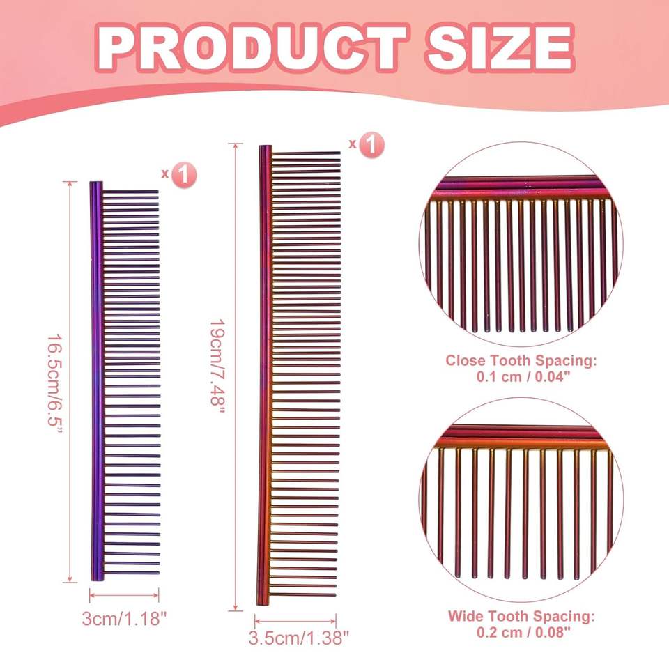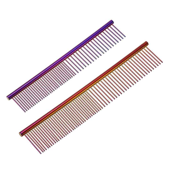 Dog Cat Comb, Pet Combs Stainless Steel Teeth with Rounded Ends for Knots Mats Loose Hair Removal, 6.57.5IN (Purple Plated,