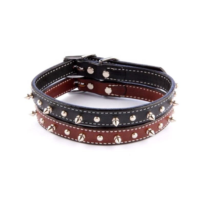 Solid Chrome Spiked Leather Pet Collars