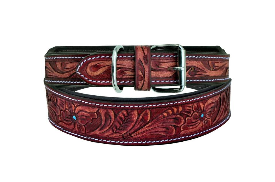 Luxury Designer Adjustable Leather Dog Collar Solid Metal Unique Training Pet Accessory with Floral Pattern and Padded Comfort