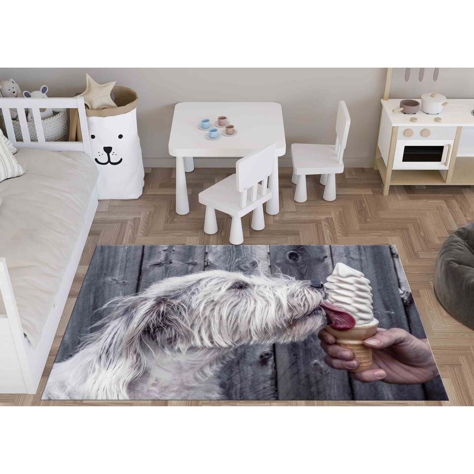 Dog Eating Ice Cream Printed Rug: Bath Rug, Personalized Rug, Housewarming Gift,Velvet Rug