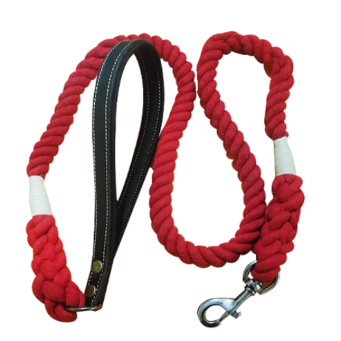 Dog Leash Heavy Duty Durable Soft Braided Cotton Slip Rope Pet Leashes with Leather Comfortable Handle