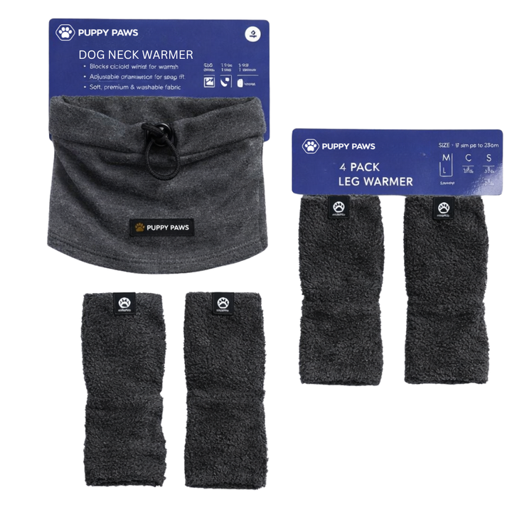 Dog Leg Warmer and Earmuff Protector Set Grey Thermal Fleece Sleeves with Stretch Head Cover for Cold Weather Comfort Dogs