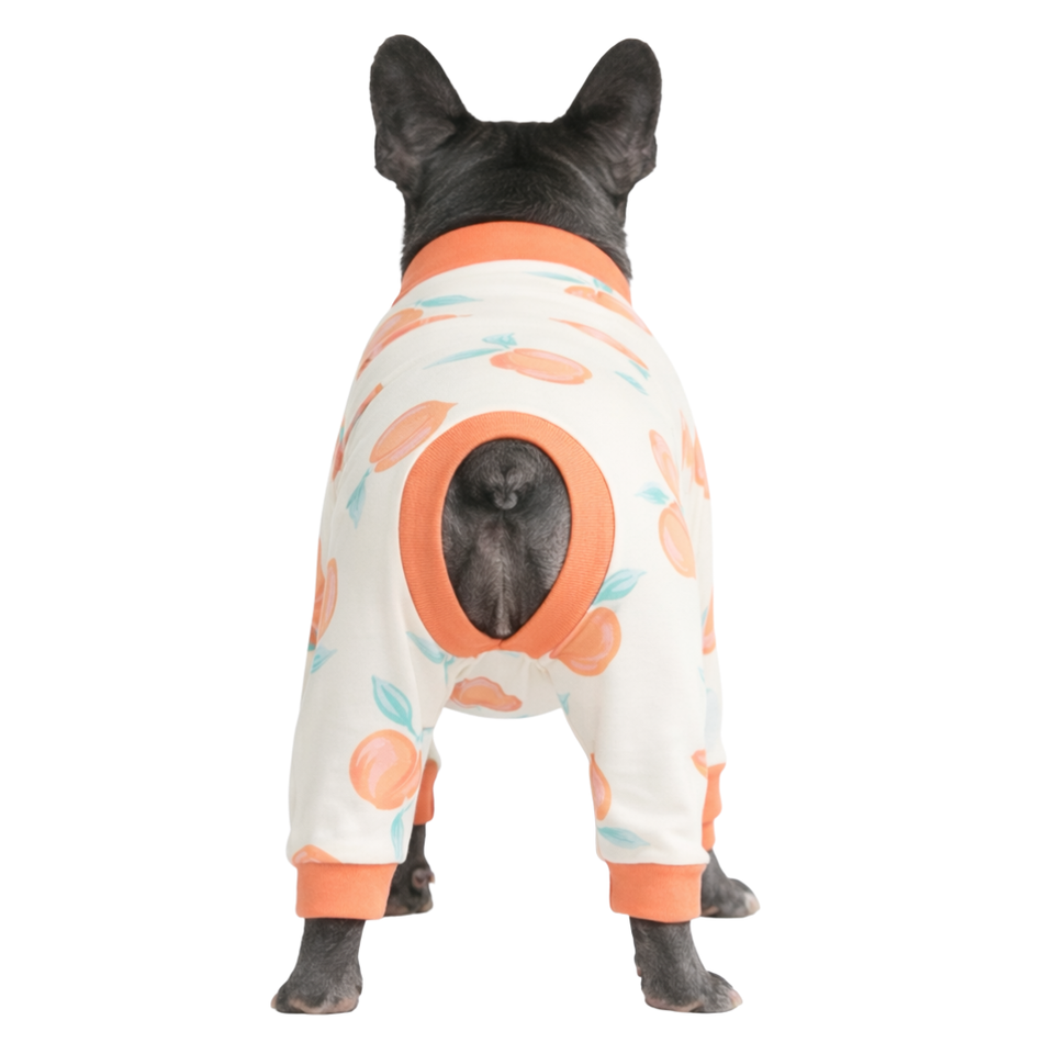 Dog Pajamas Onesie Peaches Print Soft Stretch Pet Sleepwear Cozy Breathable All Season Nightwear For Small Medium Dogs Indoor