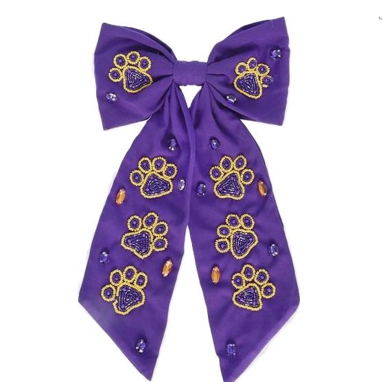 Dog Paw beaded embroidery hair bows customized colors and designs Cotton Bow From India Handmade for Women and Girls