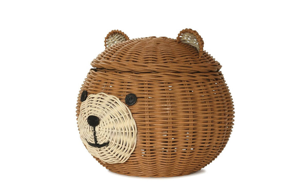 Dog Shaped Wicker Rattan Basket With Lid Cute Bin with Puppy Head & Ears Small Storage Basket Boho Nursery Shelf Decor Organizer