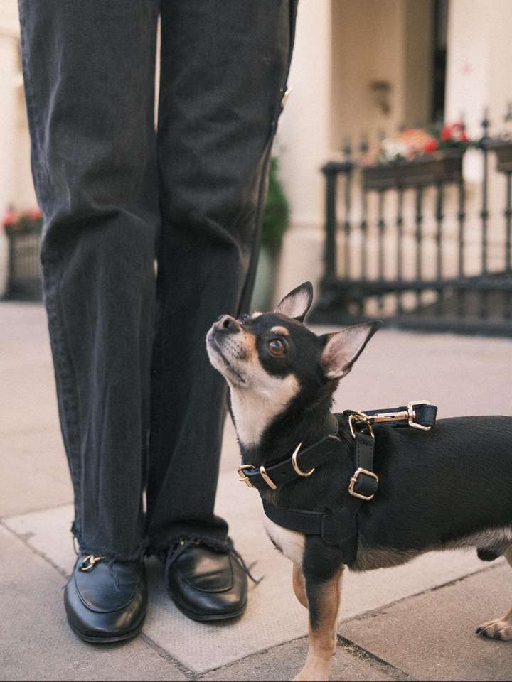 Dog and Leash Set Adjustable Hands Free Harness Walk Kit for Small Medium Large Dogs Strong Durable Leather & Wool Black