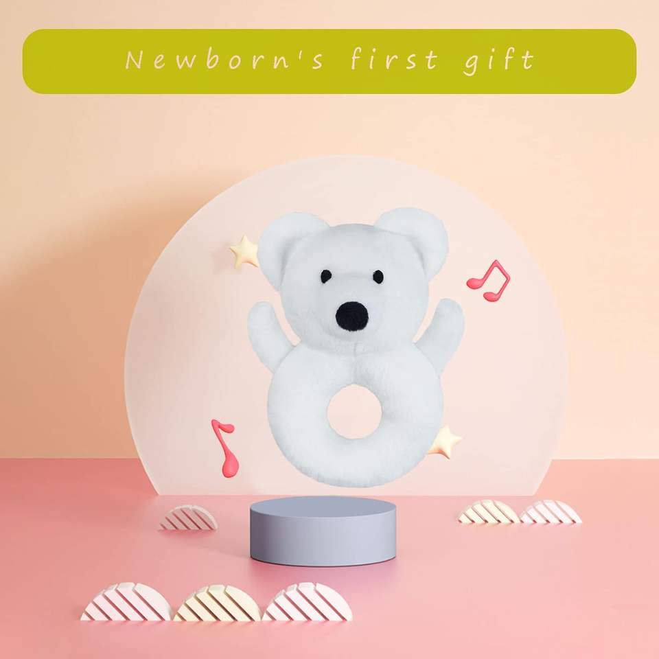 Doindute Baby Cotton Polar Bear Soft Rattle Toy Easy-Grasp Infant Shaker with Bell Plush Animal Toy Gift