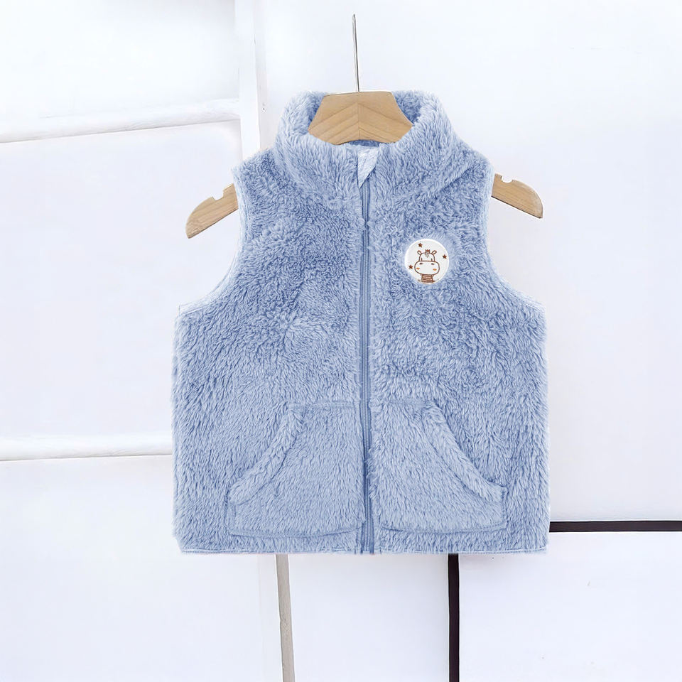 Dokma ALB24 Cartoon Pattern Baby Vest Unisex Sherpa Fleece Zip Closure Crew Neck Cotton Lined Warm Casual Wear
