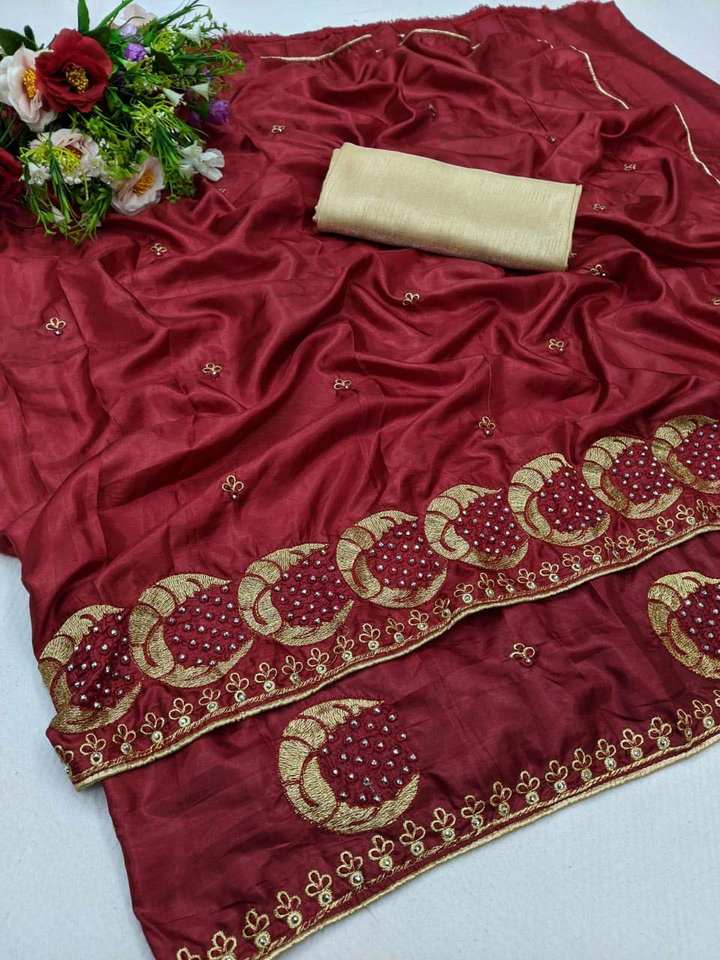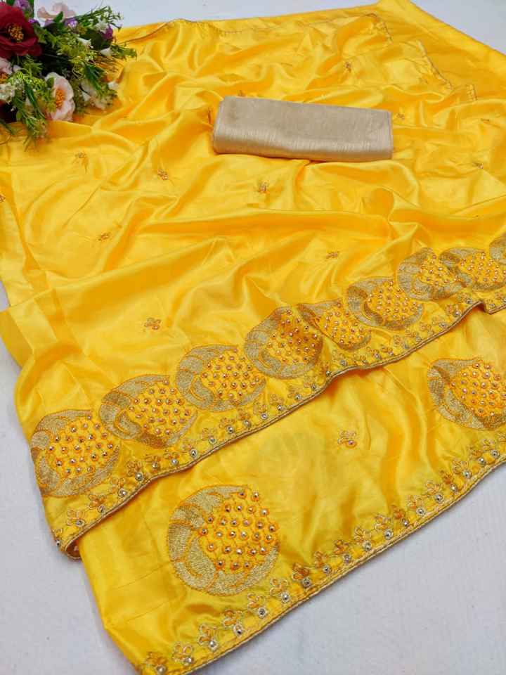 Dola Silk Heavy Stone Embroidery Work Saree with Beautiful Blouse Piece Wedding Wear Indian Ladies Women Wear Sari Low Price Alphanumero