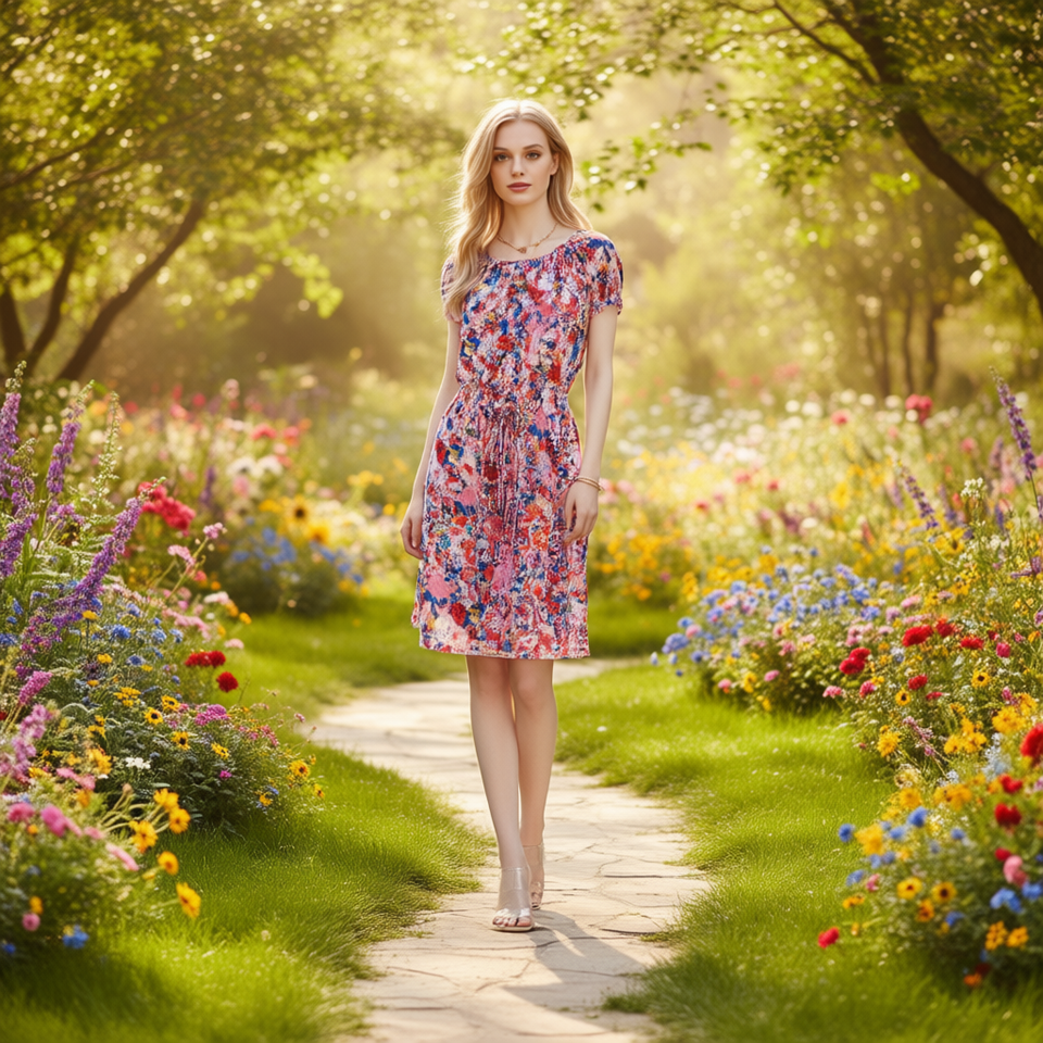 Dolado Floral Print Casual Dress Women Summer Mini A-Line Cap Sleeve O-Neck Breathable Woven Loose Fit Elastic Waist
