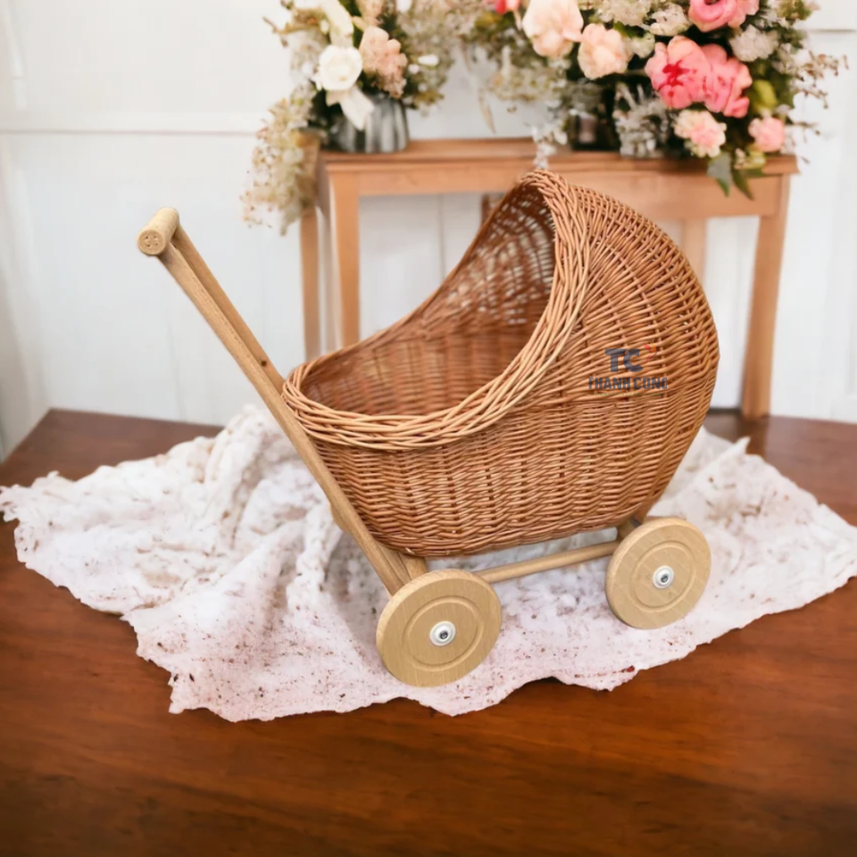 Doll Natural Stroller Handmade Wicker Rattan Doll Pram Kids Baby Furniture Wholesales Vietnam