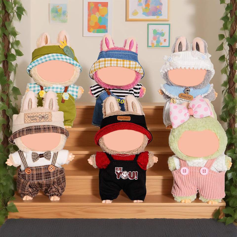 Dollbie Kawaii Outfit Collection 6 Sets of Fashion Dress Replacement for 17cm Plush Dolls Made From Glass PVC Material 3 Years
