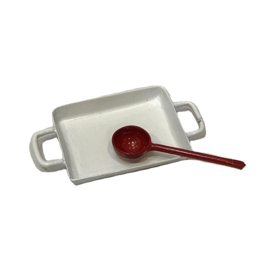 Dollhouse Miniature Best Supplier Form India Metal Miniature White Tray and Small Spoon for Doll House Kitchen 1/12 Scale