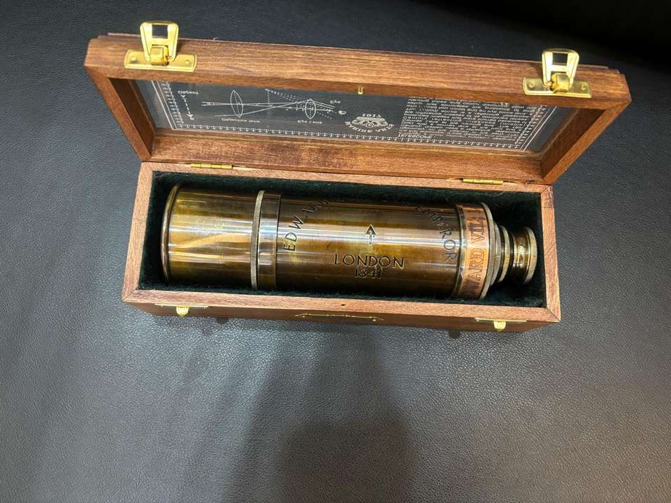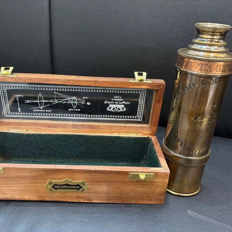 Dollond London Handmade Brass Nautical 25'' Telescope with Theory print glass Wooden Box Unique Spyglass Gift Foldable Binocular