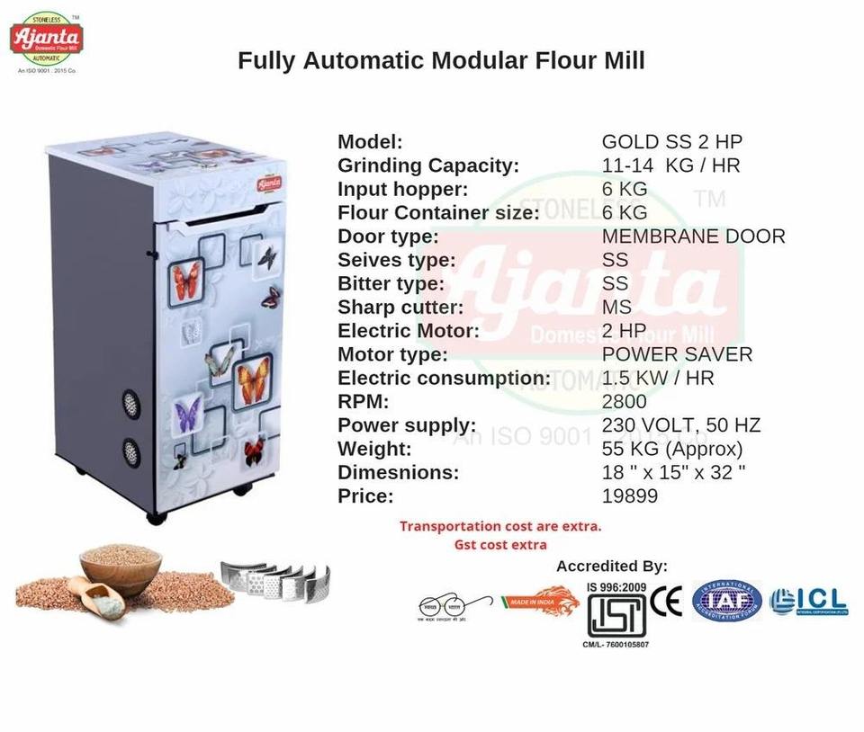 Domestic flour mill stoneless atta chakki fully automatic food processing machine SS pulverizer chips farsan dryer peeler