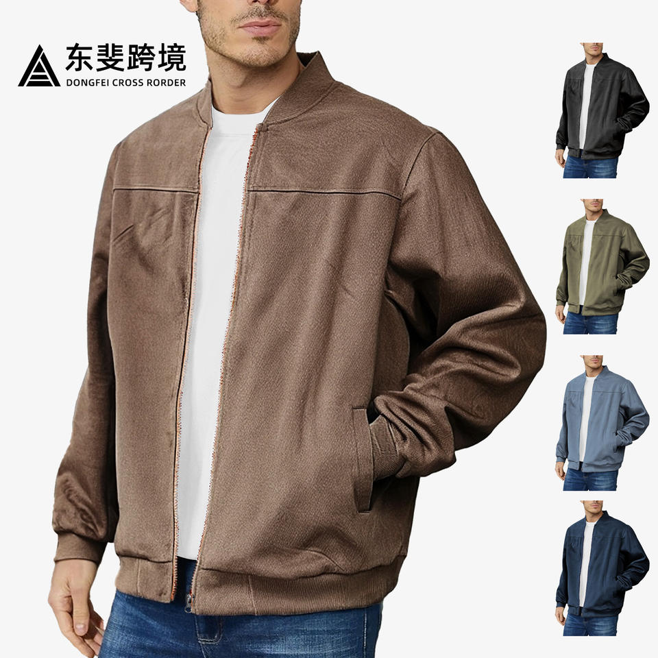 Dongfei Cross Border Men's Suede Jacket Zip-Up Long Sleeve Windproof Casual Spring Autumn Outerwear