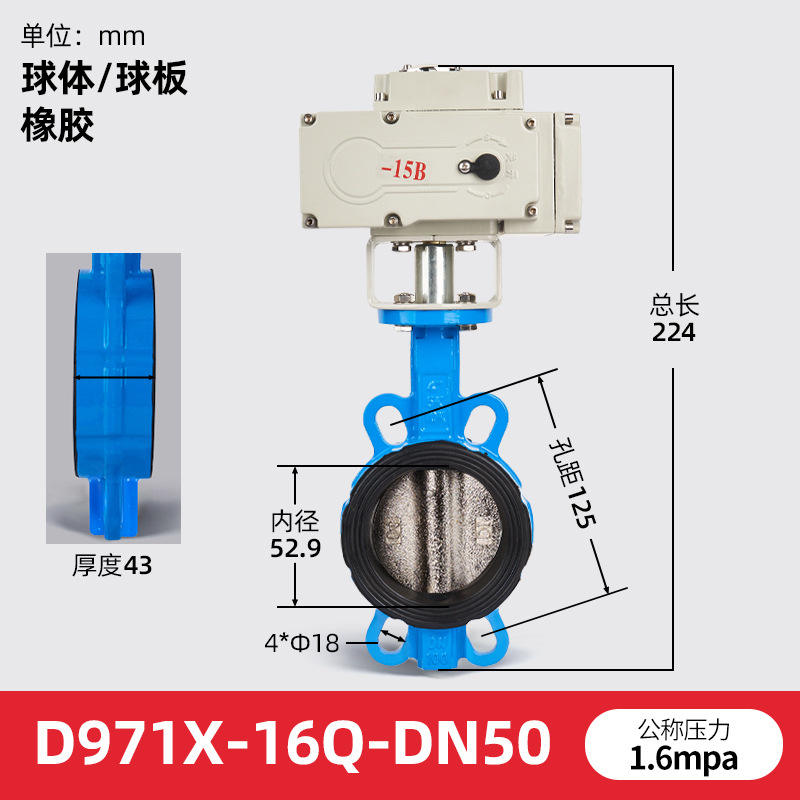 Dongqi D971X-16 Electric Wafer Butterfly Valve Explosion-proof Cast Iron DN50-500 Adjustable Switch for Oil Media