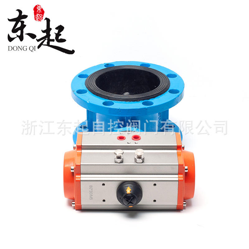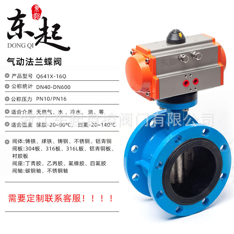 Dongqi Pneumatic Flange Butterfly Valve D641X-16Q Ductile Iron Anti-Corrosion Rust-Proof Quick Shut-Off Soft Seal for Oil Gas