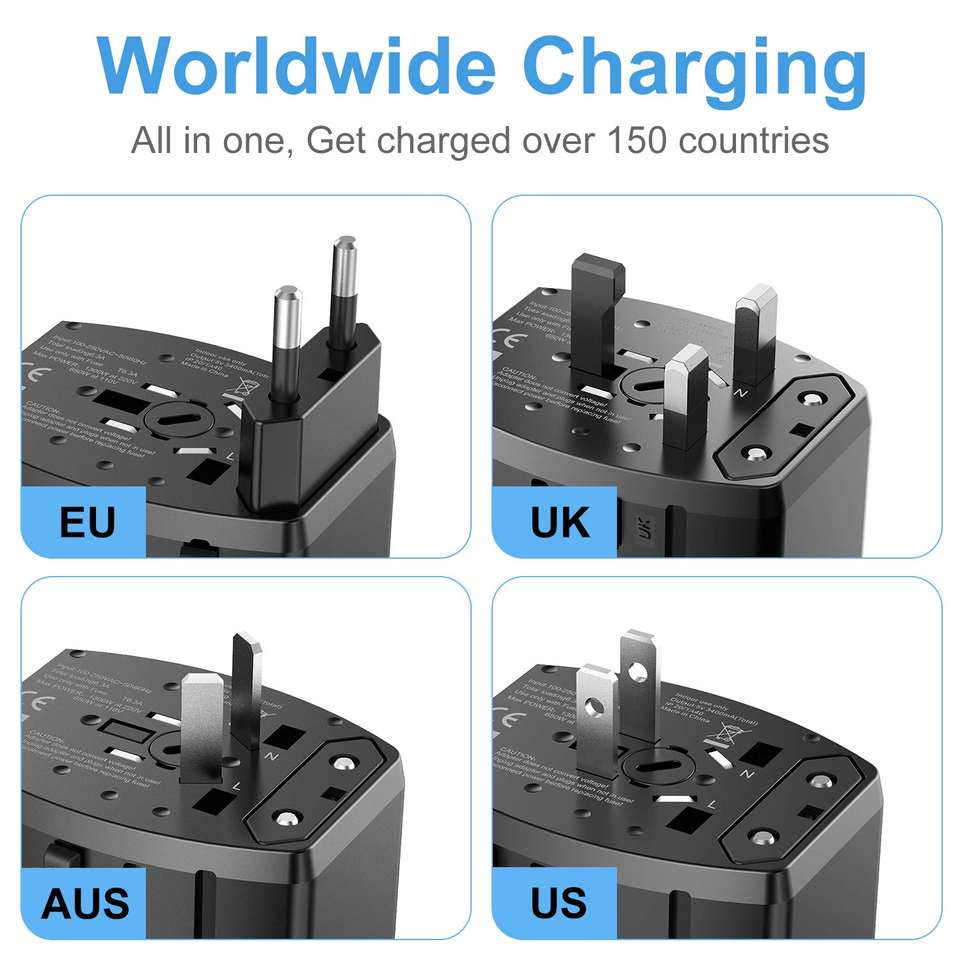 Dongyi Universal Travel Plug Adapter EU US UK AU OVP OCP OTP Features Multi Plug Universal Travel Adapter 3 Type-C + 2 USB