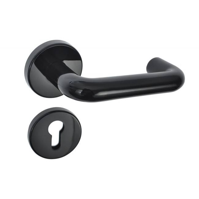 Door Handle U Assa Abloy 9x9x125 PZ, Round Escutcheon, glossy black (fire-resistant) (set) (AHW100UUPZ/9/PB)