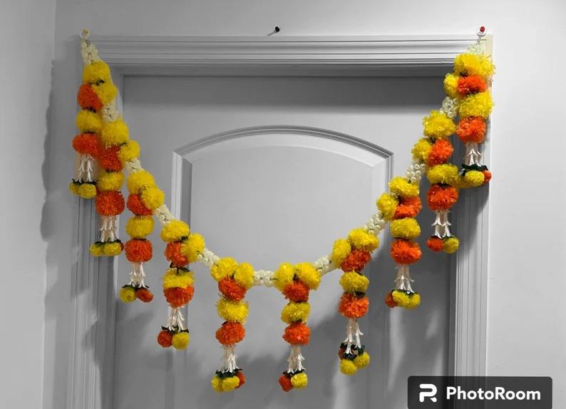 Door Hanging Home Decor Toran Marigold Garland Pair Indian Festival Decor Diwali Wedding Baby Shower Housewarming Gift