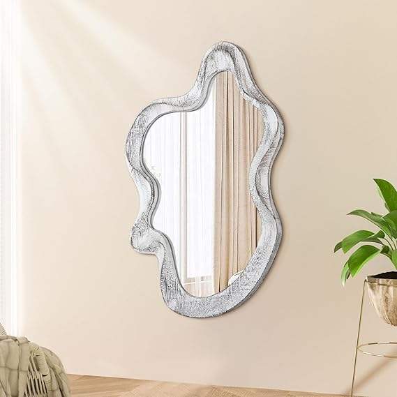 Door Hung Decorative Art Deco White Large Metal Wall Shaving Mirror Hanging Chain Complete Kit Living Room Hallway Bathroom