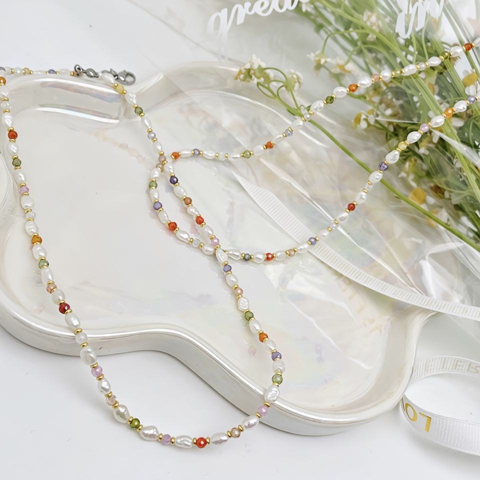 Dopamine Colored Zirconium Baroque Natural Freshwater Pearl Bracelet Necklace Versatile Best Friend Luxury Niche Design