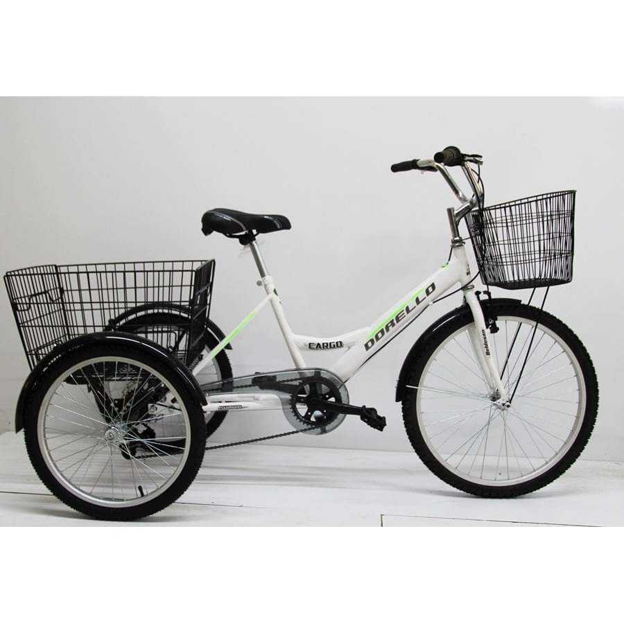 Dorello 2060 White Cargo Bike with 20 Rims and Aluminum Fork Single Speed 3-Wheel Cargo Bike with Basket Market Model
