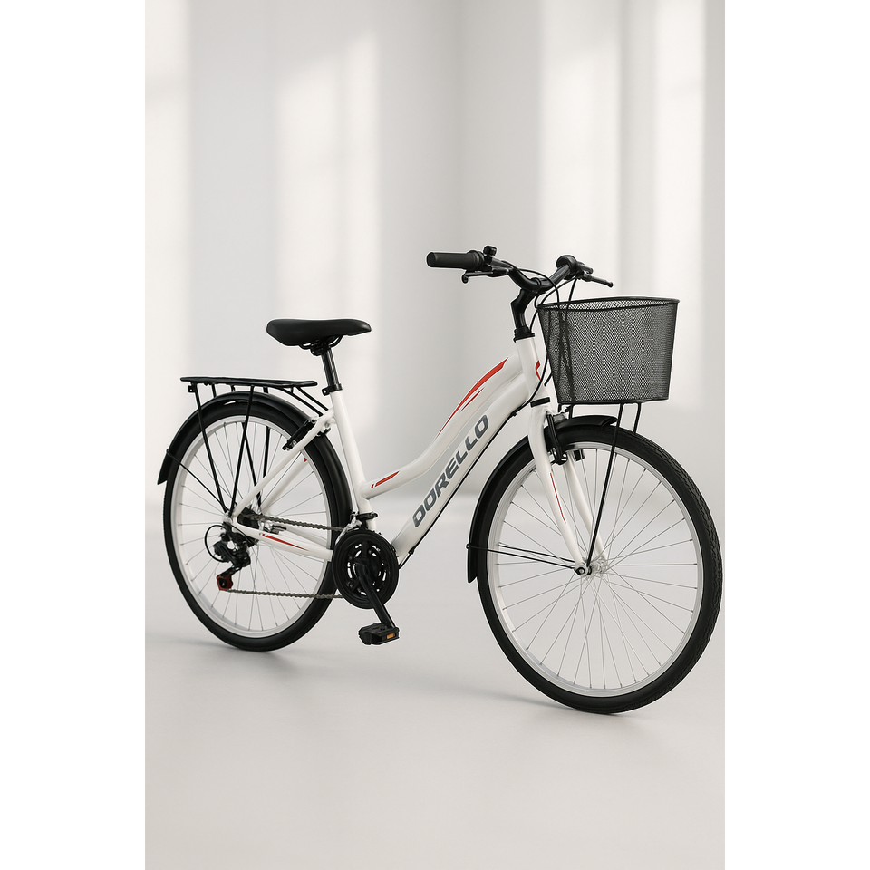 Dorello City Bike 2650 Model 26-Inch Rim with Mudguard and Luggage Basket White Color