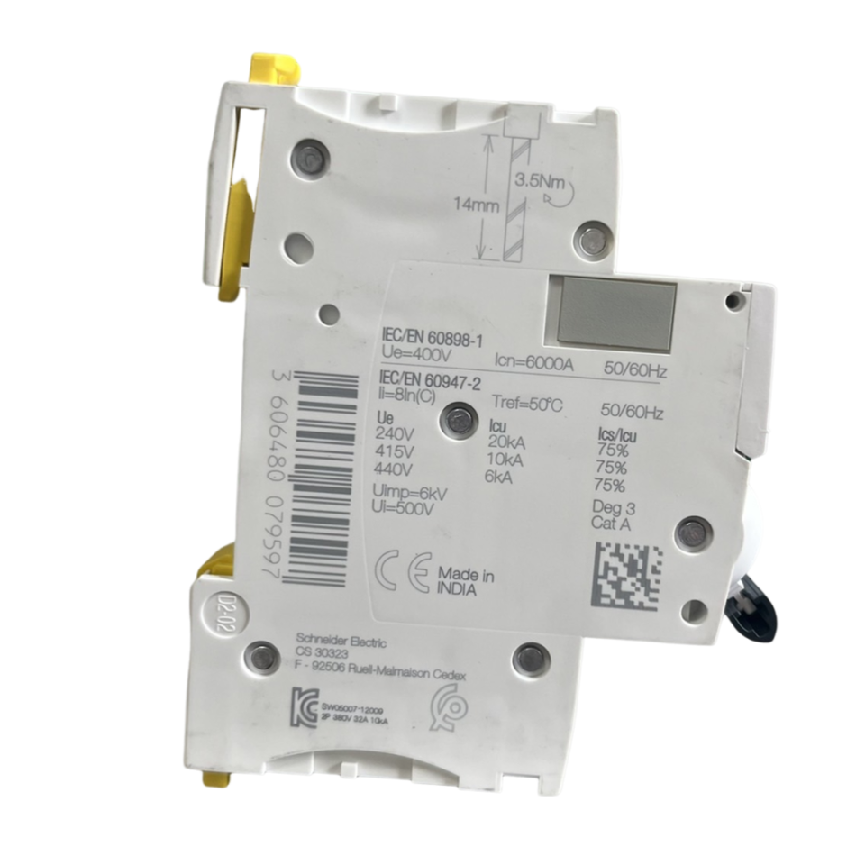 Product Name:Schneider miniature Circuit Breaker iC60N C curve 2 poles 32A A9F74232