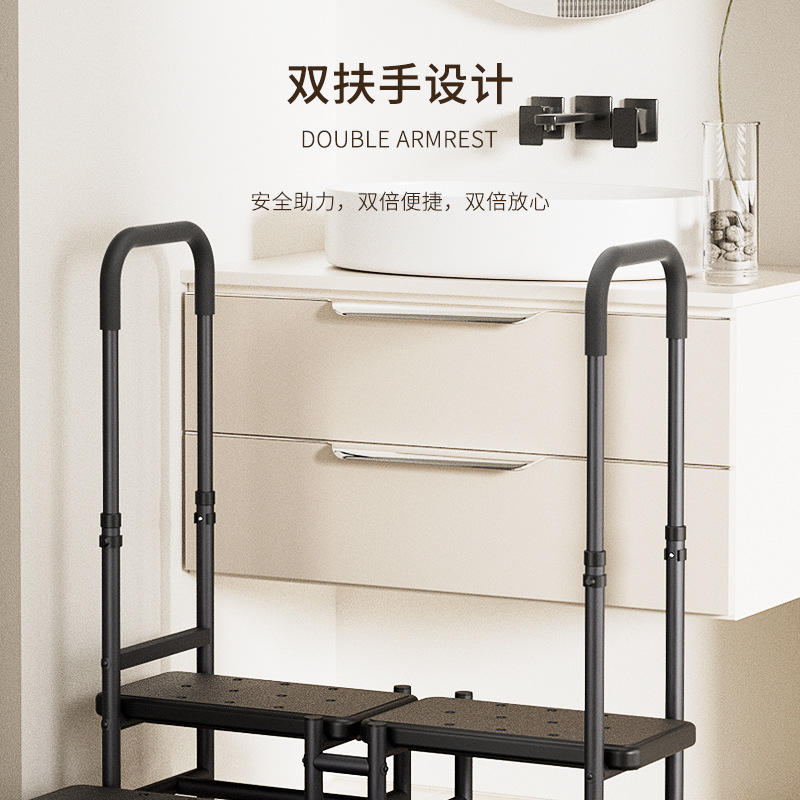 Double Armrest Step Stool With High Carbon Steel Frame For Elderly Home Hospital Use HB-110025
