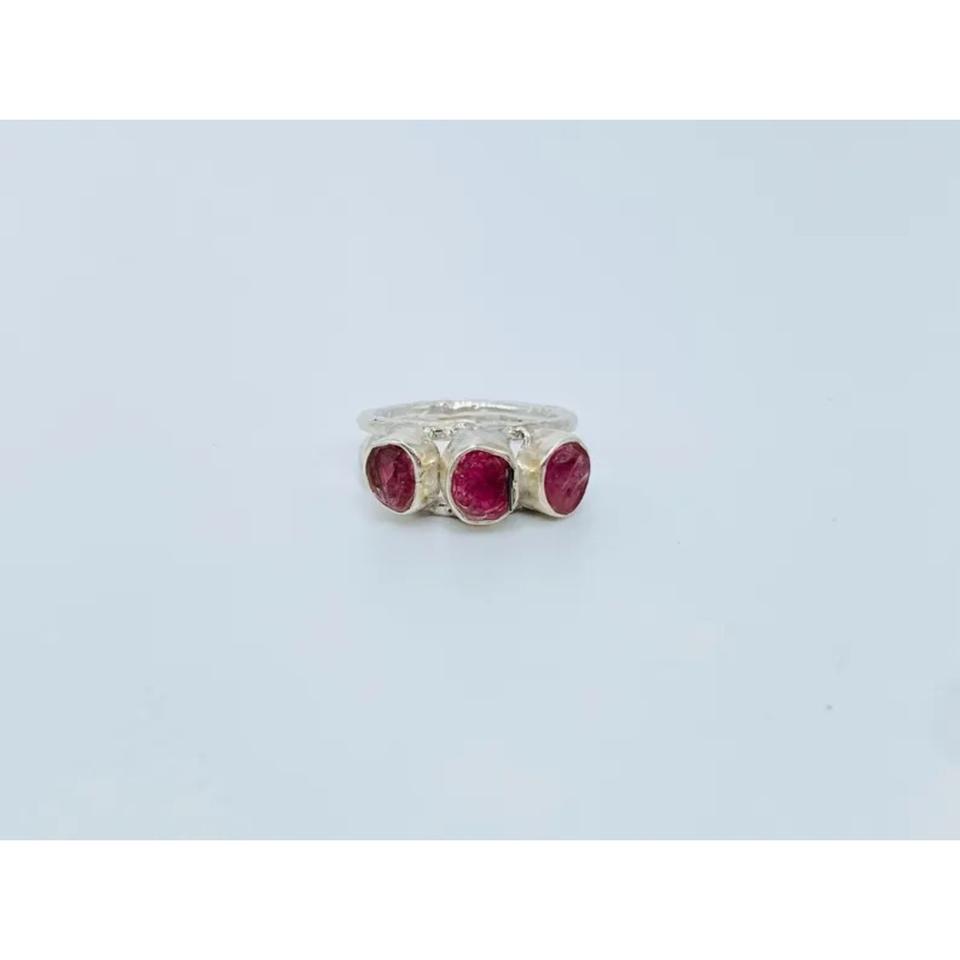Double Band Raw Stone Ruby Ring for Women Girls 925 Sterling Silver Jewelry Fine Silver Bulk Wholesale Jewelry Party