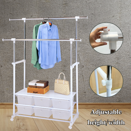 Double Bar Detachable Clothing Organizer with Storage Drawers Free Sample Standing Type for Home & Store