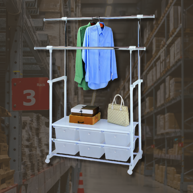 Free sample double bar clothes rack for home with storage drawers