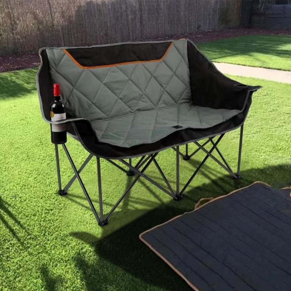 Double Camping Chair Soft Couch for Outdoor Travel Picnic Beach Fishing Garden 2 Person Folding Armchair Camping Chair Loveseat