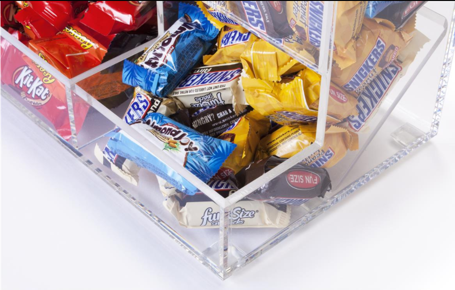 Double compartments clear custom wholesale acrylic candy food dispenser storage box with hinged lid Packing: Wrapping Film+ Bubble Bag + Foam +Carton+Palllet