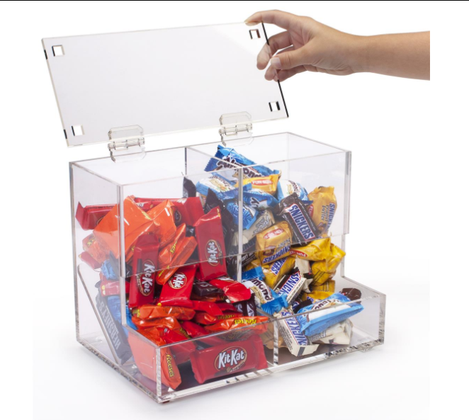 Double Compartments clear Custom Wholesale Acrylic Candy Food Dispenser Storage Box With Hinged Lid