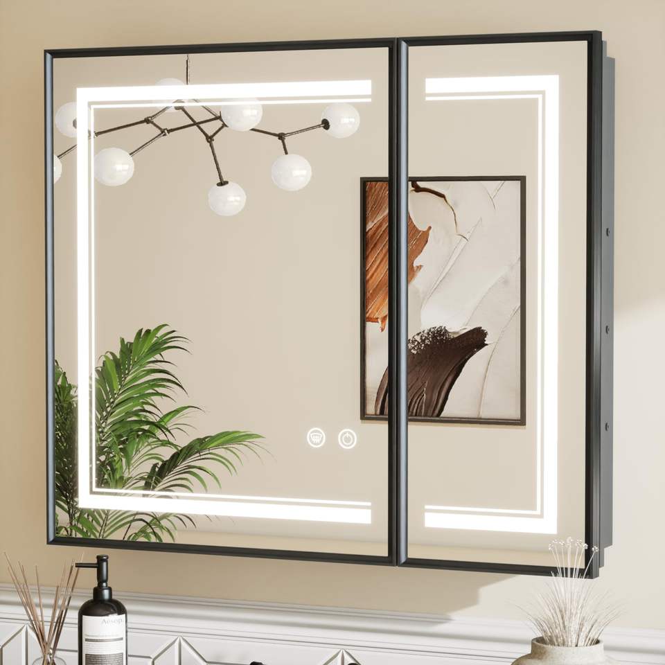 Double-Door LED Illuminated Bathroom Medicine Cabinet with Touch Control, Anti-Fog, Wall Mounted Mirror Storage Cabinet