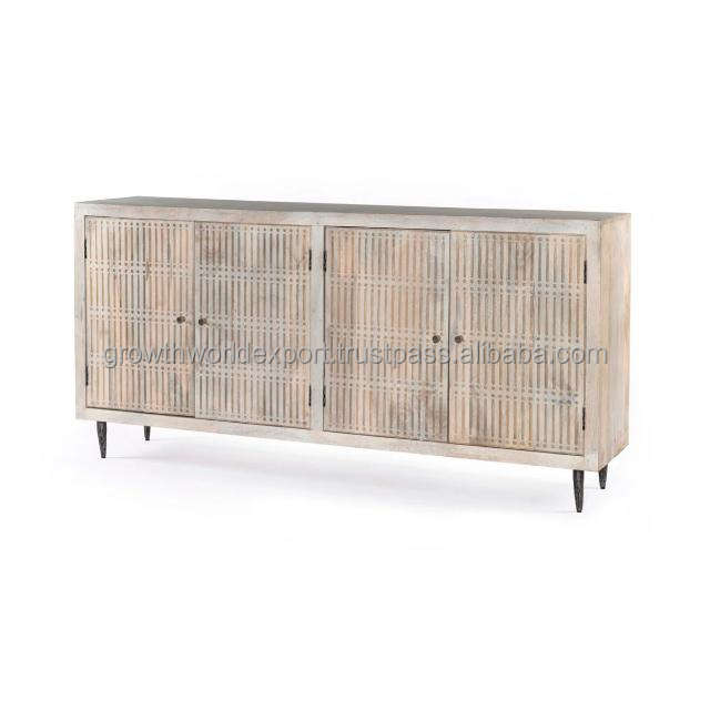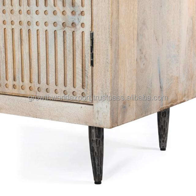 Custom Antique Solid Wood Cabinet Industrial Double Door Nordic Storage Sideboard Stylish Home Furniture Natural Stone Finish