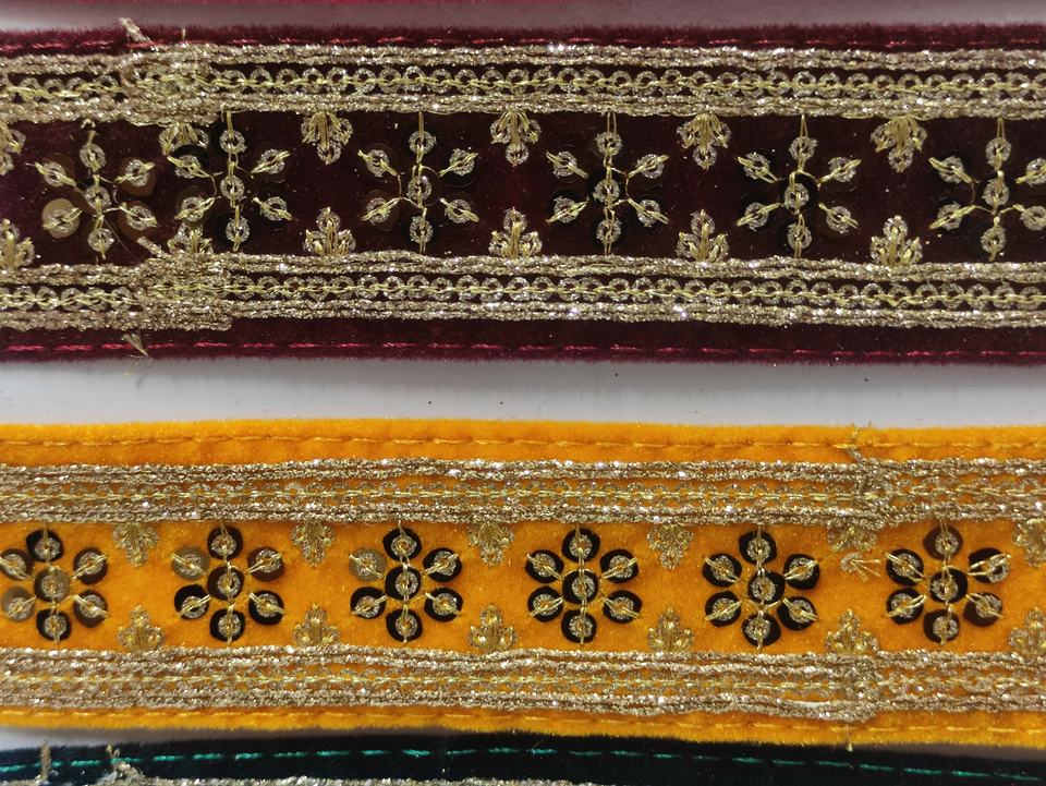 Double Face Embroidery Velvet Lace Trim Ribbons with Metallic Sequin for Women's Garments Purses & Footwear-Bulk Wholesale