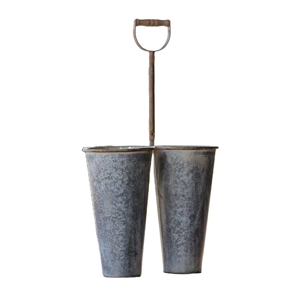 Double Garden Bucket Planter 29 Inch Galvanized Metal Bucket Pot Farmhouse Wall Decor Hanging Planter Indoor Home Decor Flowers