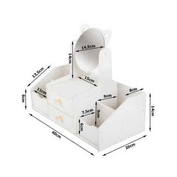 Double Grid Circle Desk Organizer 40x17x14cm Wood With Mirror And Drawers For Office Or Study Use